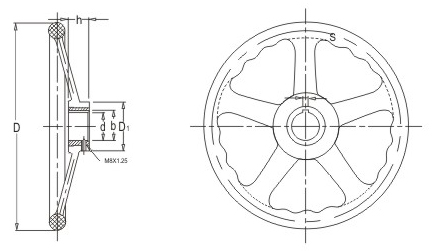 JS.101011 五輻手輪 顏色:黑色 材質:增強尼龍 用途:適用于大型、重型機械的裝備,多用于汽輪機、船舶等行業(yè) 特性:經濟環(huán)保、抗摔、輕巧靈便、質感強檔次高。鋼制鐵芯表面處理防銹能力強。標準化使用,安裝簡便